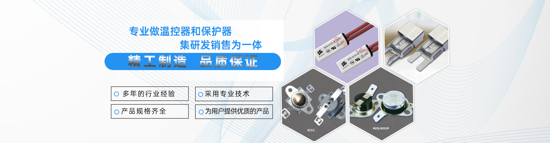 我司主打6大系列溫控器以及保護器(KI31.KSD301.  KI32 . KI71/KI71P.17AM . KI6A/KI6AP  .  KI72/KI72P .  BW.KW),上百種規格溫敏控制器;產品全部符合歐盟ROHS環保要求,所有產品均申請VDE、TUV、UL、CUL、CQC、CB各項安規認證。